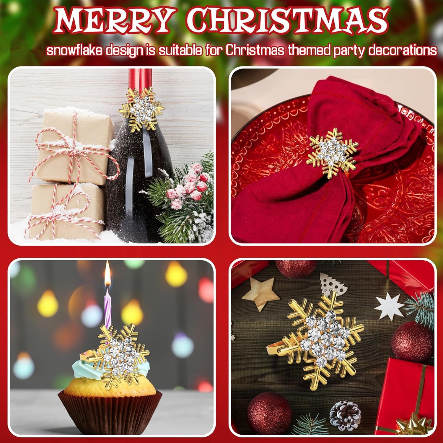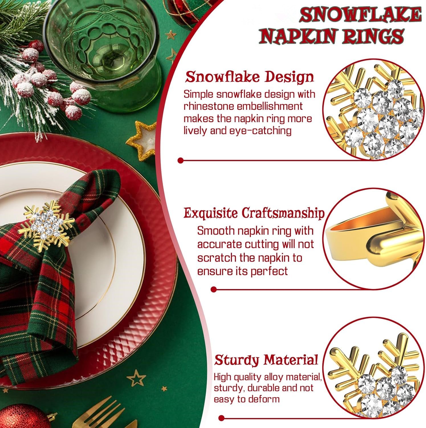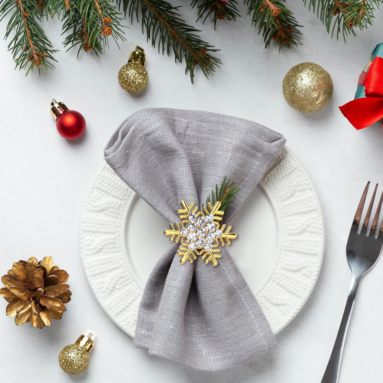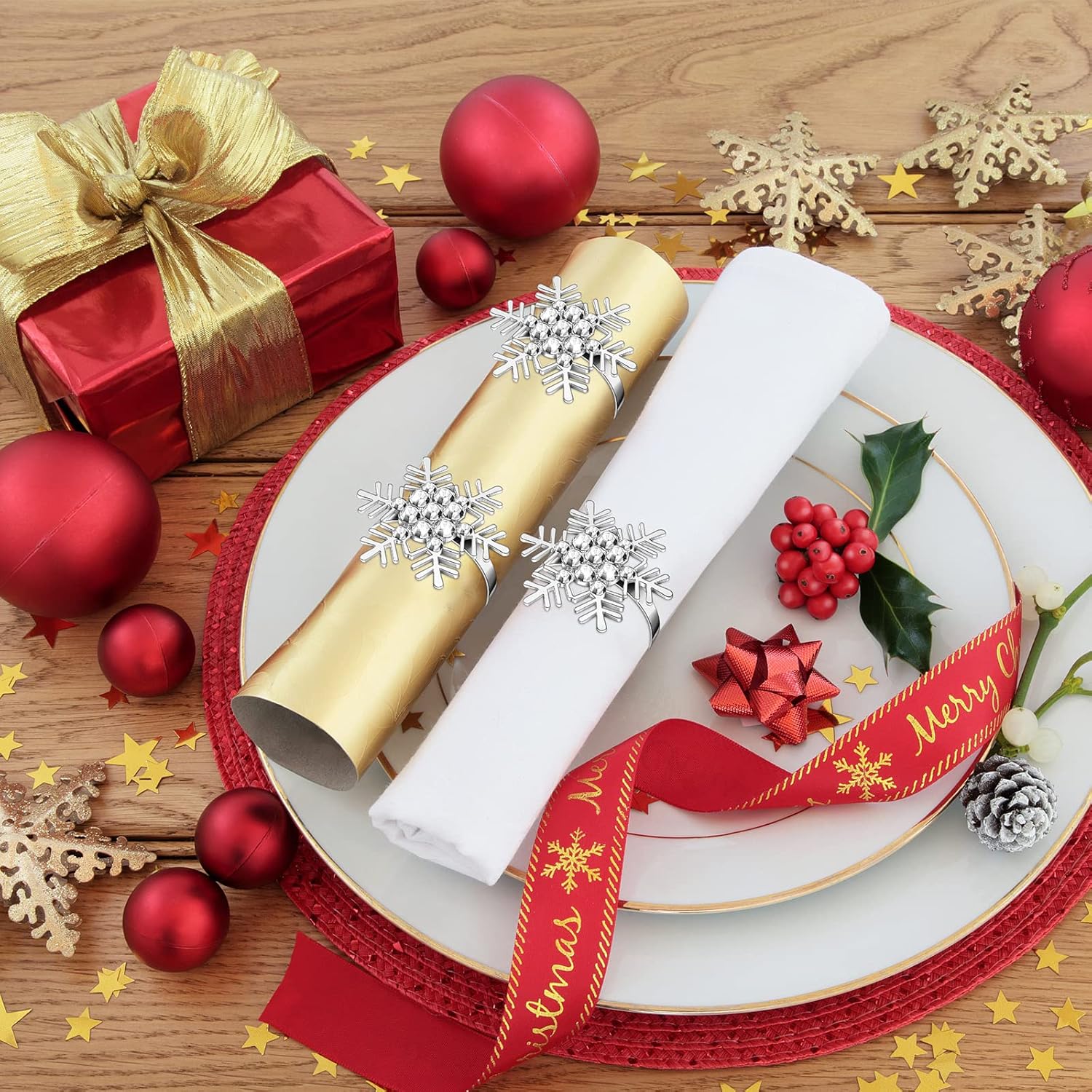 The centerpiece of our napkin rings is the exquisite snowflake design, which captures the spirit of Christmas in every delicate detail. Crafted with precision, each snowflake features sparkling rhinestones that glisten like fresh snow in the winter sunlight. 🌟❄️ The light catches the rhinestones just perfectly, casting a beautiful glow across your dining table.