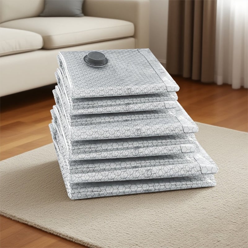 Includes small, medium, and large bags to fit everything from socks to sweaters. The wide-open design makes filling easy, while the secure seal protects your items from dust, moisture, and wrinkles. 🧦🧥🧤
