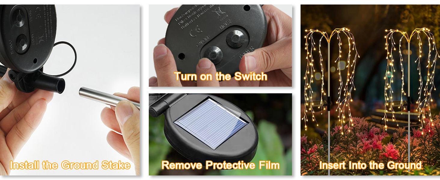 【1Pcs Solar Garden Decorative Lights】The firecracker lights mimic the look of a delicate willow tree with 6 branches and 20 LEDs on each branch. A single willow tree light has 120 LEDs.These firecracker lights can be strategically placed in various corners of the garden to add a lively and vibrant atmosphere to the garden.