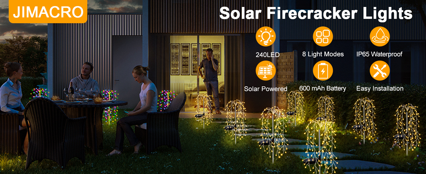 【User-Friendly Installation】For optimal performance, position the solar panel in a location that receives ample sunlight. Secure the pillars into the ground, remove the film from the solar panel, and hang the LED copper wire firework lights in desired locations such as flower beds, courtyards, or walkways. Whether for Valentine's Day, Halloween, Christmas, or any festival requiring a festive atmosphere or for weddings and parties, these lights are guaranteed to enhance the romantic ambiance.
